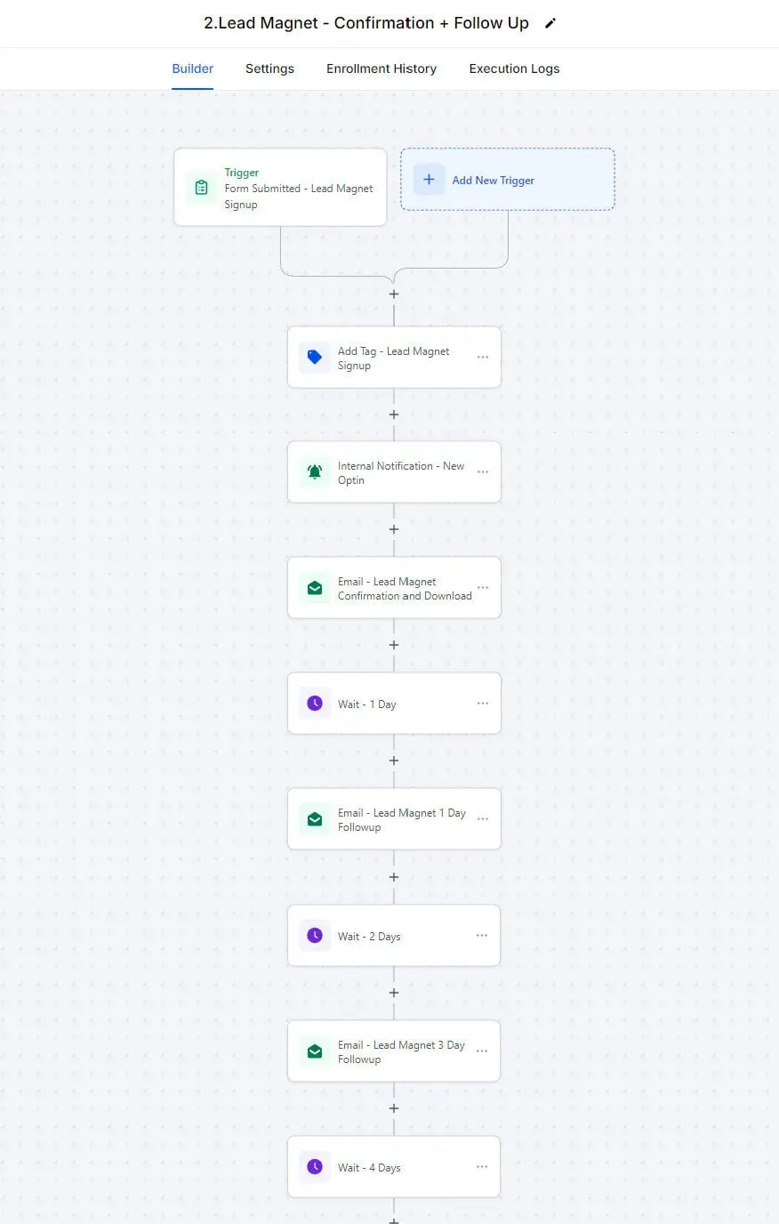 A 14-day Follow-up Series might send (e1) 1 day after the LM delivery to remind how to get started, & reassure you’re on the right path for the goal.